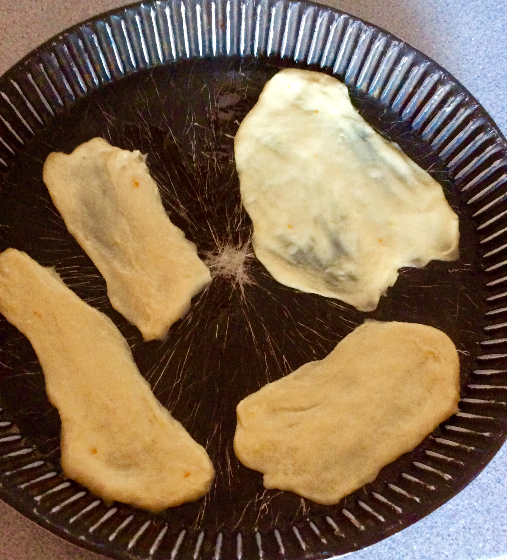 Después, cogemos pequeñas bolitas de masa que estiraremos con ayuda de un rodillo hasta conseguir formas de "orejas de animales" (según la tradición, orejas de cerdo), lo más finas posible.