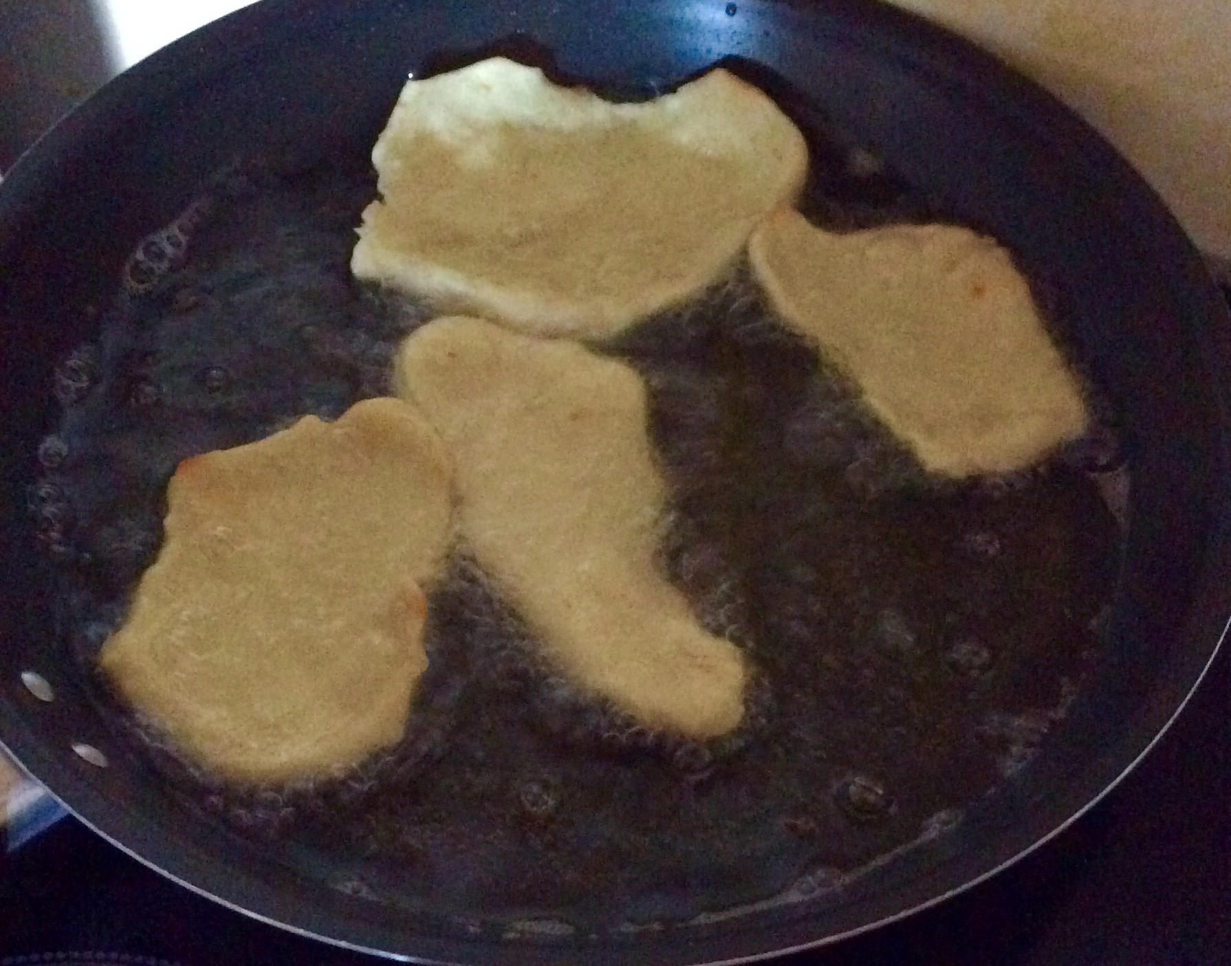 Después, calentamos aceite de girasol en una sartén (con aceite de oliva puede quedar demasiado fuerte de sabor). Cuando el aceite esté bastante caliente (no hirviendo), introducimos las orejas y dejamos dorar.